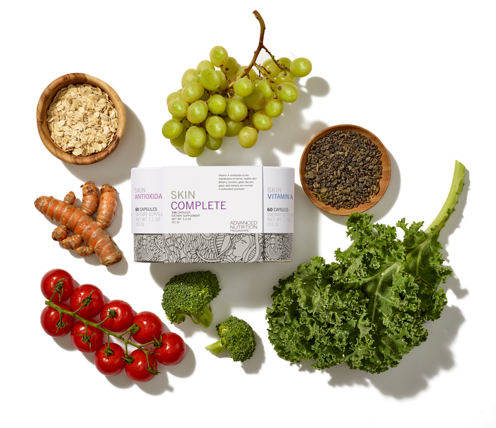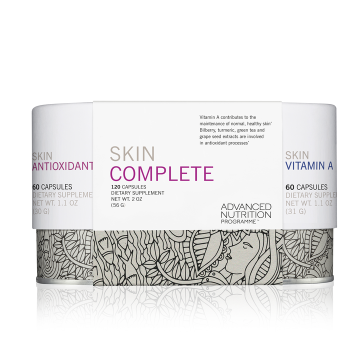Advanced Nutrition Programme supplements that combine the skincare benefits of Skin Vitamin A and Skin Antioxidant supplements into one good-for-your-skin regimen.
